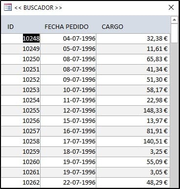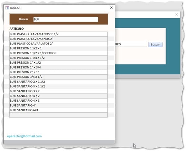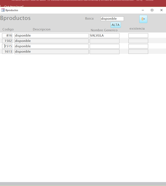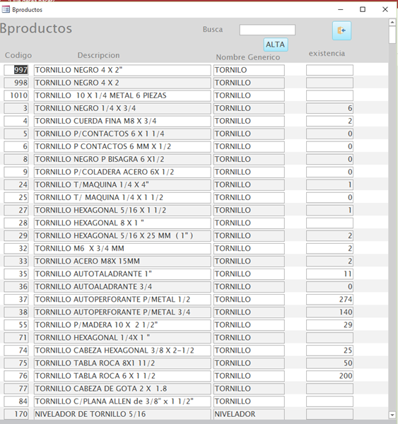 Y tiene un botón para llevar a otro formulario para buscar el código de producto de un producto que solo se el nombre pero no el código, al dar el producto buscado se me despliega un listado de varios productos que coinciden con el nombre, entonces quiero seleccionar el código y al dar escape o clic, el numero de código lo pase al campo código y me muestre el producto que seleccione, es decir me regrese a la primera pantalla