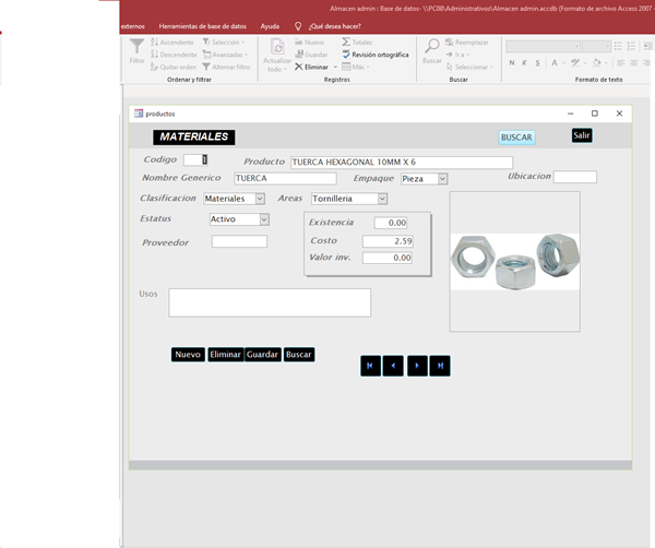 Tengo un formulario de alta de productos que tiene los siguientes capos