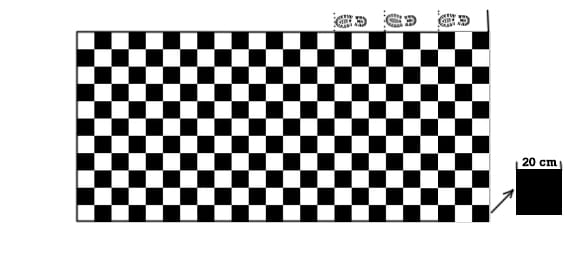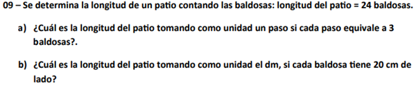¿Cuál es la longitud del patio tomando como unidad un paso si cada paso equivale a 3 baldosas?