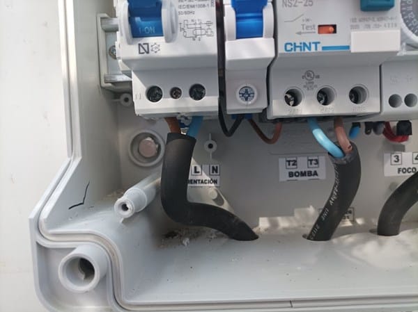 Conexión de cuadro eléctrico Tehox (Astral Pool) de bomba 0,75 cv y foco 100 w