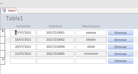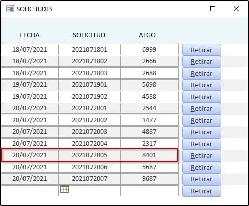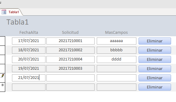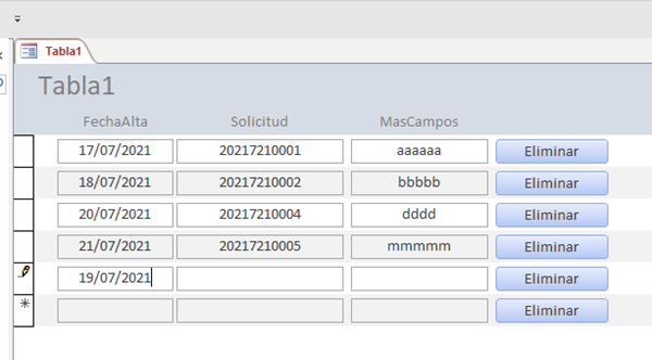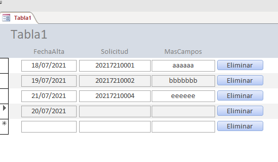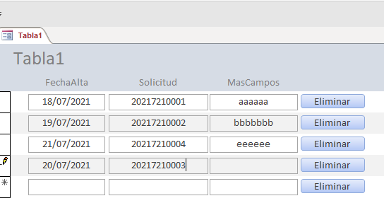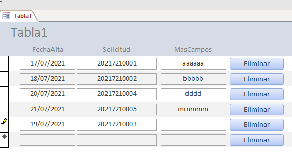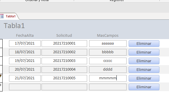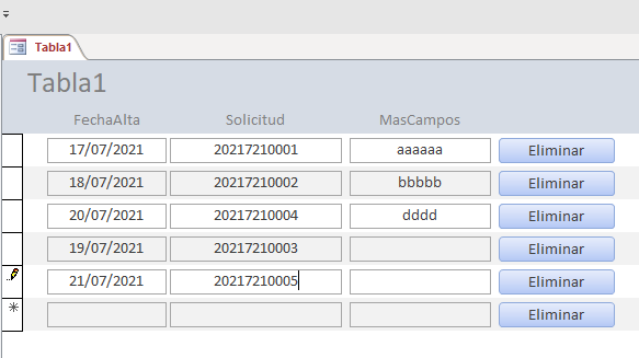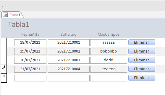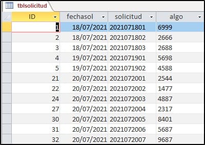 Aunque utilicé funciones se podría haber hecho con procedimientos a nivel de formulario. En ejemplo considero el campo solicitud de tipo texto, si es numérico las funciones cambian.