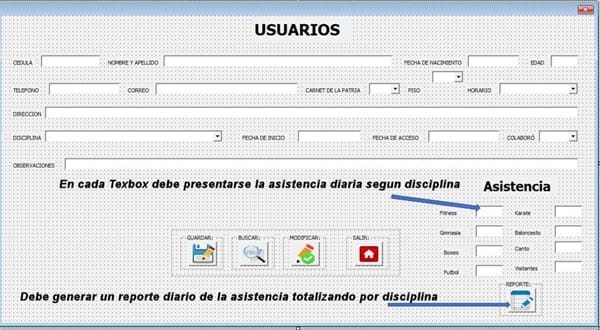Estimados amigos necesito una macro que busque en una hoja llamada usuarios, las celdas que contengan una misma fecha y especialidad deportiva, las sume y muestre dicha suma en un textbox de un formulario (son varias disciplinas y deben estar en un textbox cada una)