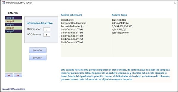 Me ha creado la tabla que llamo tblimporta con 3 columnas, por simplicidad asigné el nombre de la tabla en el código pero se puede elegir de otra forma desde el mismo formulario.
