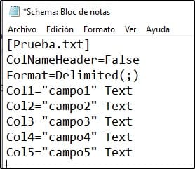 strSQL = strSQL & " INTO tblimporta FROM [Text;HDR=No;FMT=Delimited;Database=" & CurrentProject.Path & "].[Prueba.txt] AS t ;"