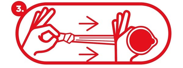 Una vez hayamos hecho correctamente el nudo, tendremos que coger el condón con dos dedos y desplazar el aire que habíamos dejado dentro de este hacia abajo.