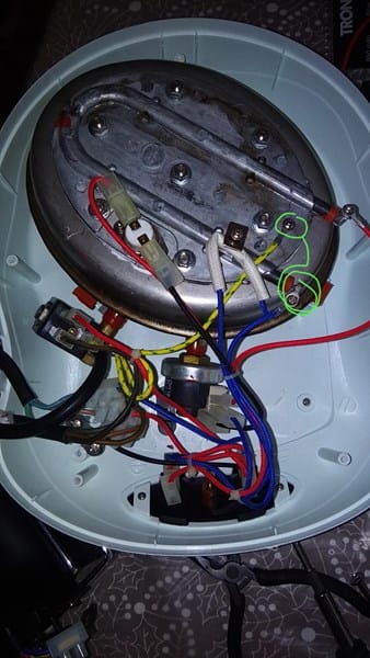 En teoría el problema para estos casos seria el termostato, y como no tengo muy claro si podría estar dando algún fallo que no veo, he unido los contactos eléctricos que van a este, así que debería empezar a calentarse... Pues no se calienta.
