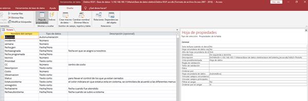 La primera tabla llamada Tticket en esta capturo toda la información que referente al incidente con los campos: idcontrol como llave principal, incidente (numérico), fecha, concepto, observaciones