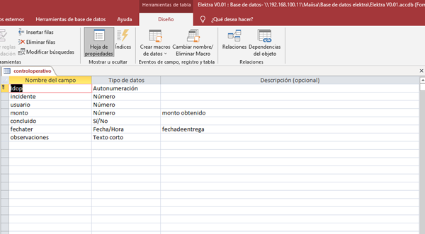 Mi segunda tabla se llama controloperativo en esta tiene los campos