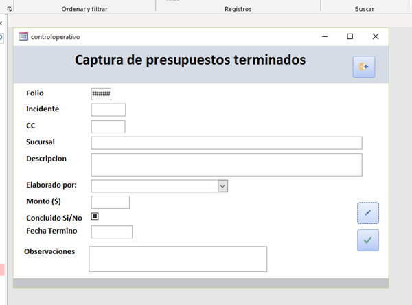 Ambas tablas están relacionadas por el campo incidentes, y un formulario que se llama controloperativo