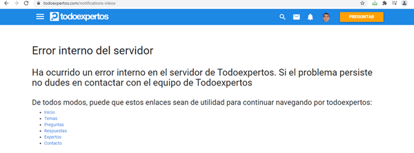 ¿Alguien me puede explicar que esta sucediendo con la plataforma de todoexpertos?, es que sale lo que presento en la imagen que presento a continuación.
