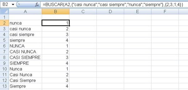 Que función debo de utilizar para cambiar nunca casi nunca de vez en cuando y siempre por 1, 2,3,4 respectivamente en un