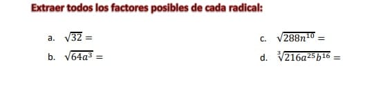 Extraer todos los factores de estas radicales con solución y explicación gracias a todos desde ya