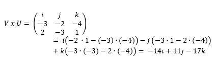 ⦁ Dados los vectores U=(2,-3,1) y V=(-3,-2,-4). Calcular