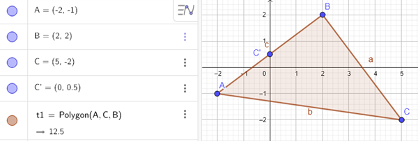 Puntos medios de todos los lados de un triangulo isósceles con coordenadas (-2,-1),(2,2) y (5,-2)