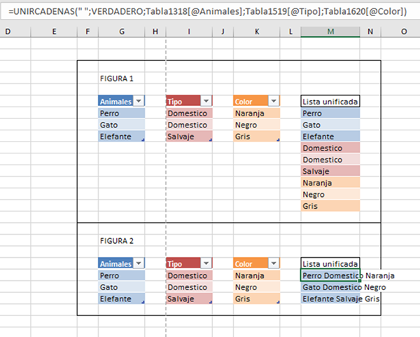 En una hoja, tengo varios listados de palabras. Cada lista está en una columna aparte y cada una es una tabla. En otra hoja necesito unificar todas las palabras de cada tabla, para obtener un solo listado. Bien sea con un comando o con formulas, alguien podría ayudarme