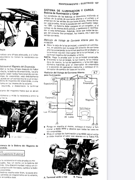 Me ha surgido una nueva duda con el circuito eléctrico de mi vieja Kawasaki GTO110cc (KH110 A1). Como le he comentado anteriormente, he vuelto a poner en marcha la motocicleta luego de 15 años de estar detenida. El motor quedó perfecto pero vengo arrastrando un problema de carga o quizá sobrecarga de batería desde que usaba la moto diariamente, hace más de una década… Sin importar cuantas veces cambiara la batería siempre las estropeaba, al principio creía que era por falta de carga pero posteriormente me hice del manual de taller de la moto y entendí que quizá estuviera dañado el regulador de voltaje y eso hacía que se sobrecargue y estropee la batería.