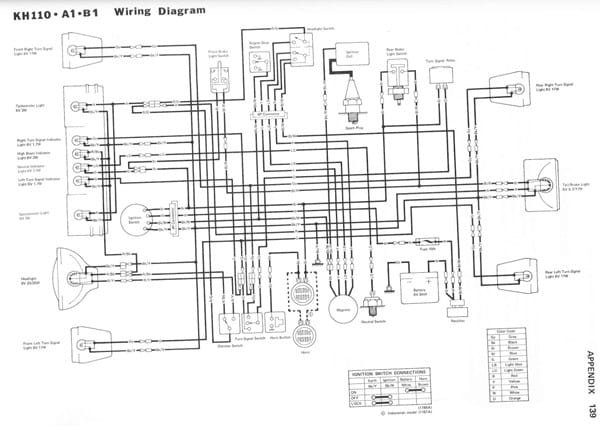 De este segundo diagrama eléctrico (KH100) coinciden los colores pero, por lo visto tampoco tenia regulador este viejo modelo).