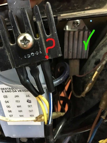Si lo elimino, ¿lo correcto seria juntar los cables amarillos y azul-blanco del viejo regulador?. Aclaro que he dado marcha a la moto con el nuevo regu-recti puesto en lugar del viejo rectificador y la moto funciona aparentemente bien. Es decir, con mis limitados conocimientos tomo el voltaje de la batería con la moto apagada y es de 6.33v y cuando la enciendo a 4000RPM sube a 6.8v. La luz frontal y la trasera de posición siguen cambiando su intensidad dependiendo de las RPM, no se si esto debería ser así pero intuyo que al ser alimentadas por corriente alterna generada en el magneto, si hay menor RPM habrá menor voltaje, osea esta ok.