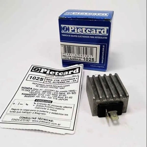 He aquí la cuestión… he comprado batería nueva y regulador nuevo (el único que se consigue aquí para estas motos) que según el prospecto reemplaza al rectificador y tiene además el beneficio de ser también regulador.