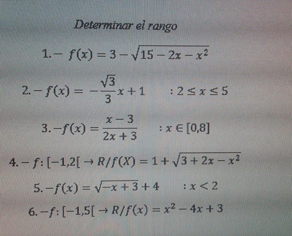 Rango; conjunto de valores que toma una función dentro de su dominio.