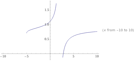La función solo tiene soluciones reales para x> -5 porque sino la raíz ( x+5) se haría imaginaria, Para x< -5 no existe.