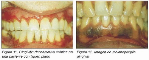 • Gingivitis descamativa: actualmente se considera una manifestación clínica de varias enfermedades, siendo las dermatopatías las más frecuentes: liquen plano, pénfigos, penfigoides y lupus eritematoso (Figura 11).