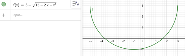 $$\begin{align}&f´\left(x\right)=\frac{1+x}{\sqrt{-x^2-2x+15}}\end{align}$$disculpe esta bien sacada la derivada de el ejercicio f.