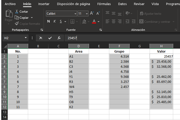 Es importante tener en cuenta que, de cada columna a copiar, se debe seleccionar, únicamente las filas de cada columna que tenga dados y se debe mantener el formato de origen al pegar.