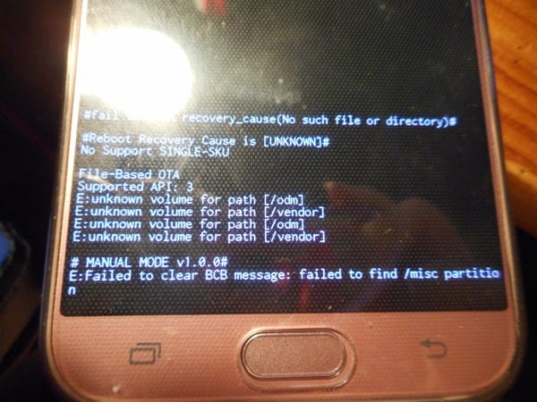 Resulta que me he hartado de resetear de fábrica y hacerle un hard reset y en uno de ellos vi como si una aplicación externa se ponía con a pantalla de color agua y un símbolo de android, pero no le di importancia, hasta que hoy he intentado formatearlo por lo menos 5 veces y cuando le hago el hard reset me da un error al hacerlo es el siguiente: