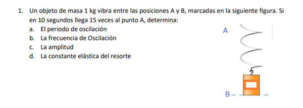 Un objeto de masa 1 kg vibra entre las posiciones A y B, marcadas en la siguiente figura. Adjunto imagen