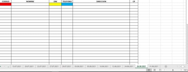 Por ejemplo, si el primer día es el 01.07.21 y el último el 31.08.21, la fórmula para buscar por DNI (suponiendo que el DNI a buscar está en B1) podría ser: