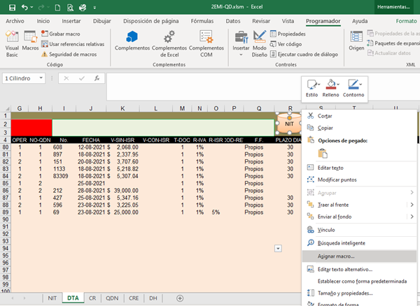 Necesito una macro que me ubique en la primer celda vacía en el rango (A5:A2999) de una hoja que se llama "NIT", pero esta macro la quiero ejecutar desde otra hoja que se llama "DTA".