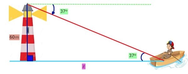 Desde la cima de un faro se observa un bote con un ángulo de depresión de 37°,