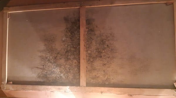 Se trata de un oleo sobre lienzo de medidas, 75 x 150 cm. Está dañado por una humedad y la parte trasera tiene moho.