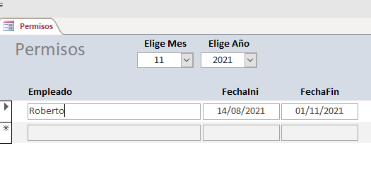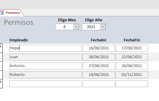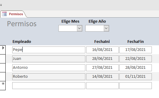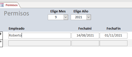 A través de un formulario selecciono el mes y el año (combos) para saber las personas que están de permiso en esas fechas