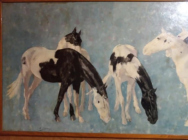 ¿Cuanto puede valer este cuadro? RICARDO ARENYS GALDÓN (Barcelona, 1914 – 1977) Oleo sobre tabla. Caballos en el Prado..