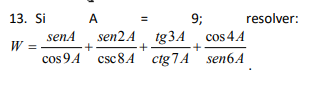 Si A= 9 , Hallar la siguiente expresión con variable W