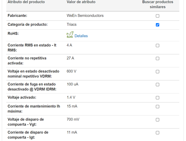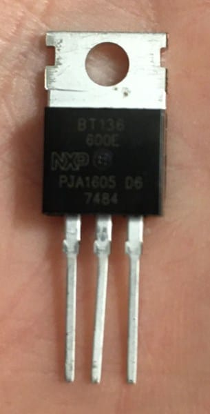 Datashee BT136 600E: https://www.mouser.cl/ProductDetail/WeEn-Semiconductors/BT136-600E127?qs=me8TqzrmIYUysoX40xfrDg%3D%3D