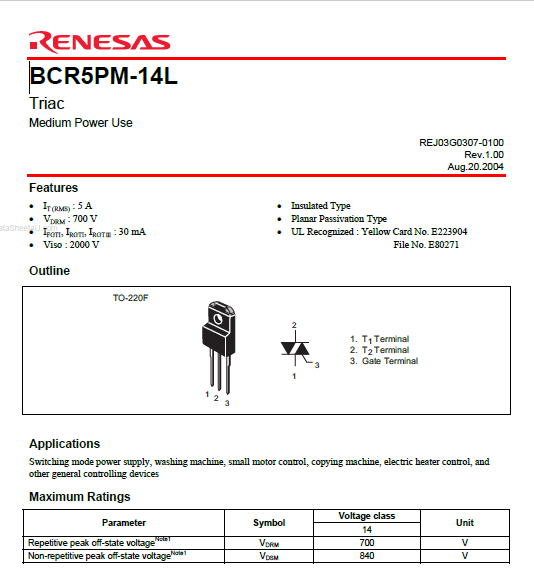 Datasheet BCR5PM 14L:http://www.datasheet.es/PDF/628615/BCR5PM-14L-pdf.html