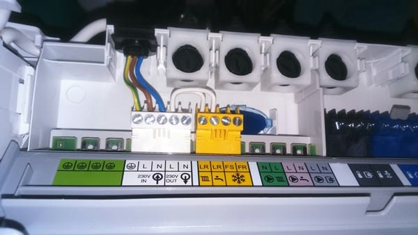 ¿Alguien podría señalarme como conectar en esta regleta de la Cerapur confort un termostato de dos hilos on off?