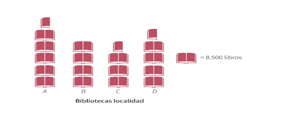 A : Cada libro del pictograma corresponde al 7% del total de libros de la biblioteca.