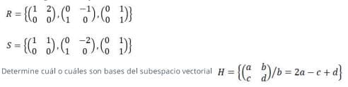 Dadas los siguientes conjuntos: Determinar base de subespacio