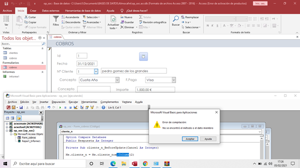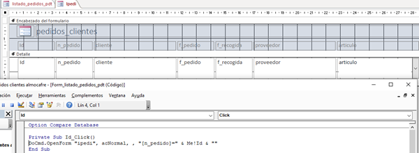 Mi intención es que cuando hago doble click sobre el campo id se muestren todos los registros de otro formulario llamado ipdi