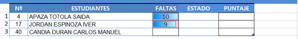 Macro optimizada, no se visualiza datos en "Estado" y "Puntaje".
