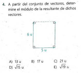 A partir del conjunto de vectores , determine el modulo de la resultante de dichos vectores