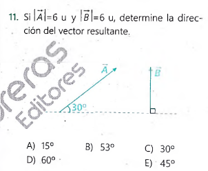 Si A=6 u y B=6 u, determine la dirección del vector resultante.