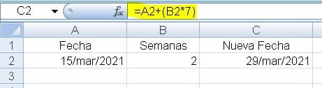 ¿Qué fórmula puedo utilizar en Excel para cuando teniendo una fecha, le sumo algunas semanas obteniendo una nueva fecha?