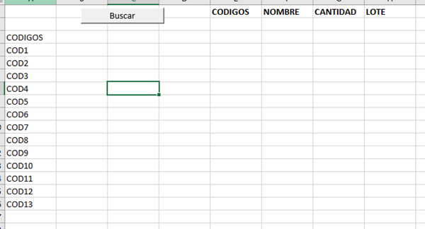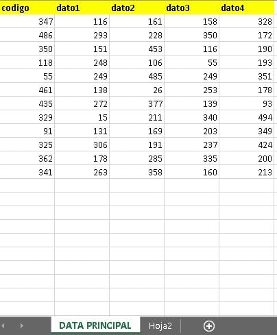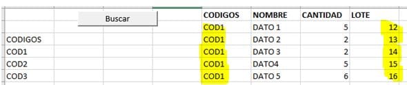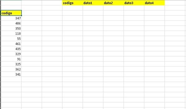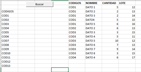 2 hoja es donde quiero que me recorra donde dice CODIGO esos datos dentro de la base y luego que me devuelva los datos encontrados en las cabeceras del lado. (Segunda imagen)