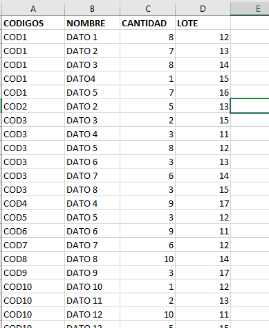 Que recorra fila por fila y me vaya entregando los datos en la otra tabla ya que son códigos únicos y dentro de un archivo quiero buscar y unificarlos.