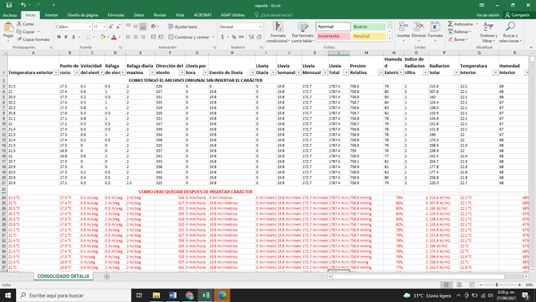 Tengo un archivo con varias celdas de información climática pero debe ir colocando a cada columna la información de medida al final de cada celda ejemplo